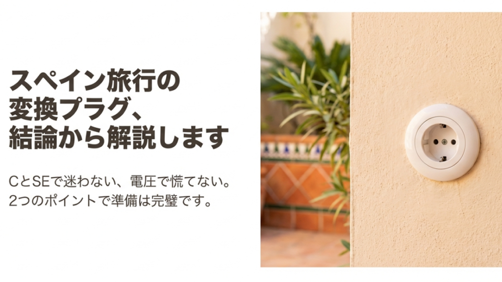 スペイン旅行の準備で、変換プラグのスペイン対応って地味に悩みますよね。スペインのコンセント形状はCタイプとSEタイプが混在って聞くし、電圧は230Vだし、変圧器が必要かも気になる。iPhone充電はそのままでいけるの?ドライヤーは使える?ダイソーで買...