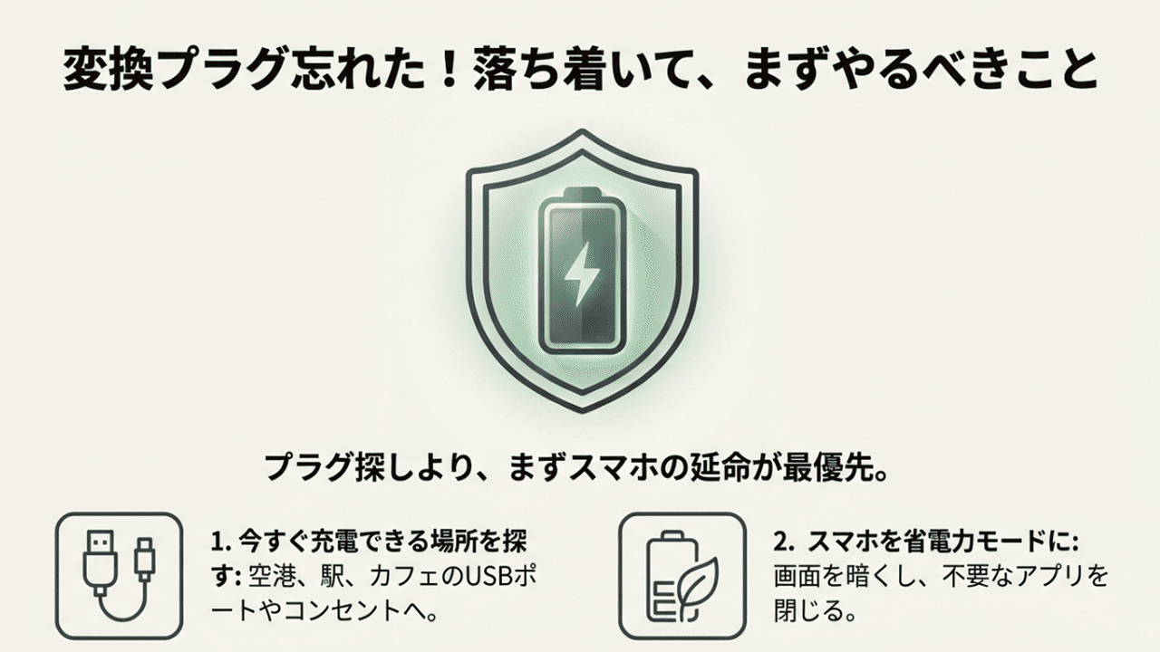 韓国で変換プラグなしに気づいたら、最初にやるべきは「プラグ探し」よりも電池切れ回避です。ここ、気になりますよね。だって充電が切れた瞬間、地図も翻訳も連絡も決済も止まります。なので、まずは“いま手元でできる延命”をやるのが勝ち筋です。